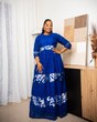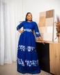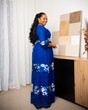 Embroidered blue patchwork dress: features soft, flowing fabric with Kokodunda accents and a matching waist belt.