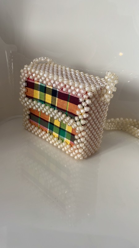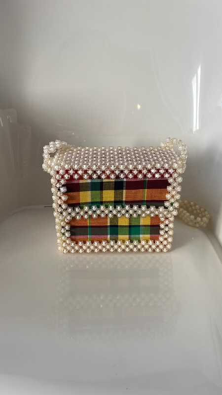 Bags Hand bags name_en: White name_en: Beads name_en: Madras Fabric