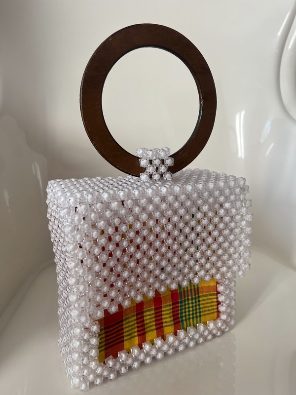 Bags Hand bags name_en: Yellow name_en: Beads name_en: Madras Fabric