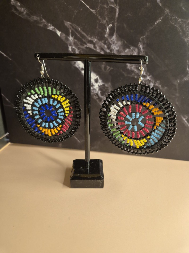 Apportez une touche de couleur et d’originalité à votre style avec ces magnifiques boucles d’oreilles rondes, entièrement faites à la main.