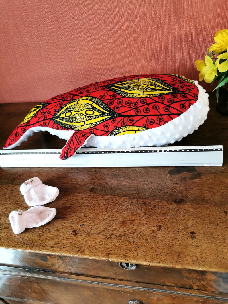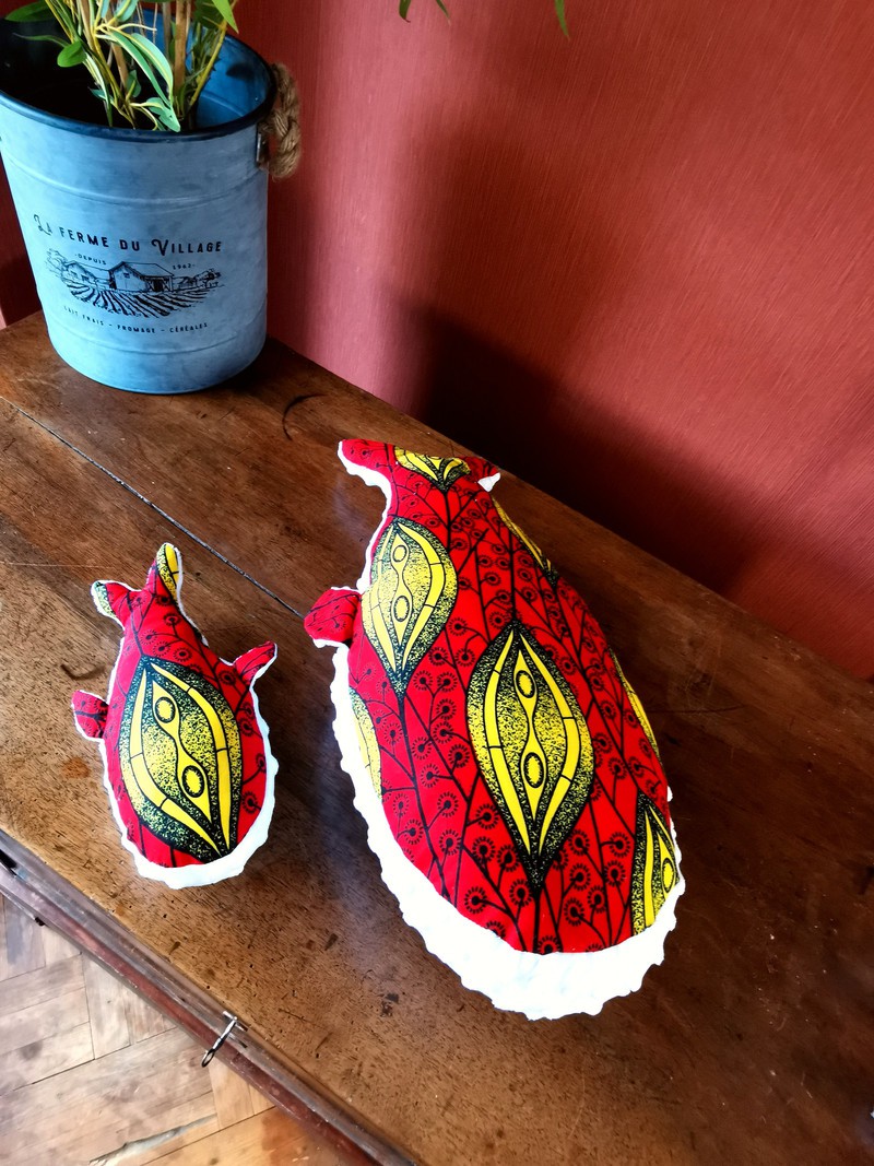 Notre baleine a été imaginée comme un vrai petit compagnon de tendresse pour les tout-petits. Cousue entièrement à la main, elle allie tissu wax coloré et matière ultra-douce minky, pour éveiller bébé au toucher, aux formes, et à sa culture.