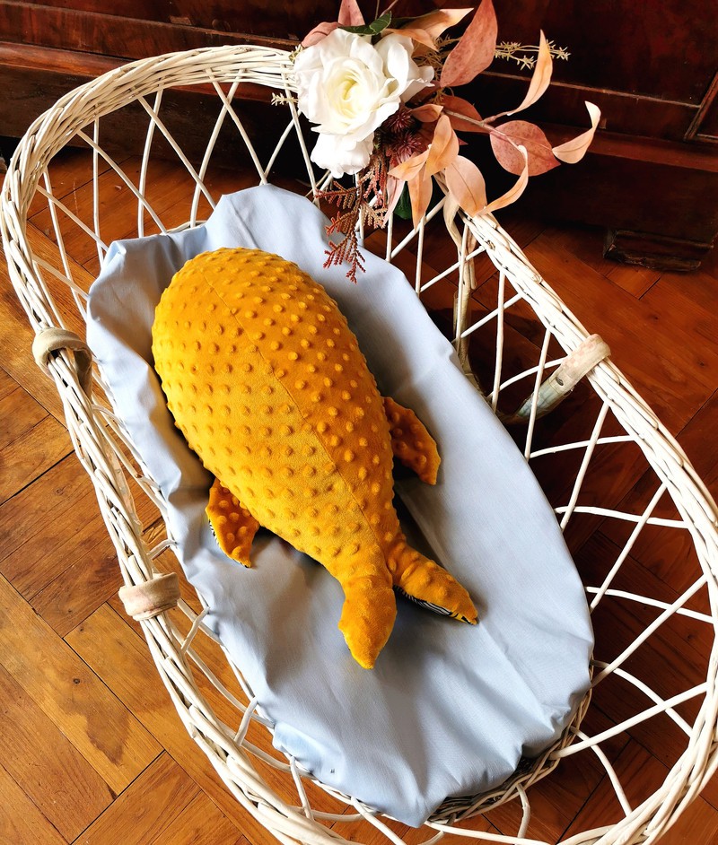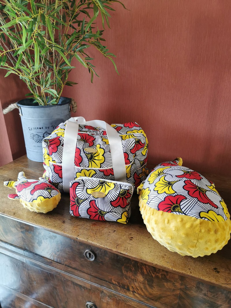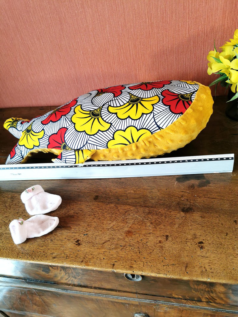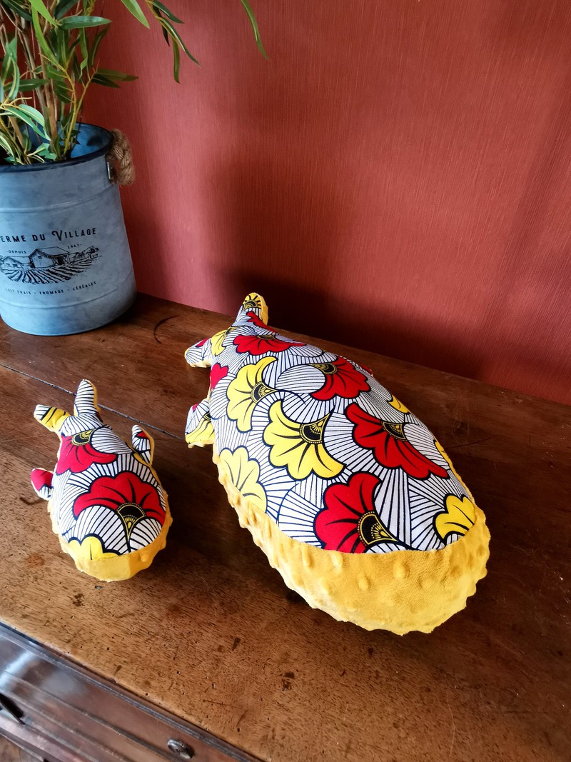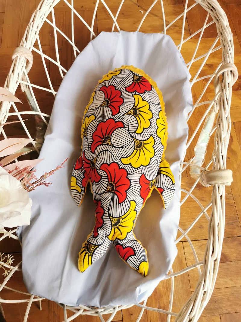 Notre baleine a été imaginée comme un vrai petit compagnon de tendresse pour les tout-petits. Cousue entièrement à la main, elle allie tissu wax coloré et matière ultra-douce minky, pour éveiller bébé au toucher, aux formes, et à sa culture.