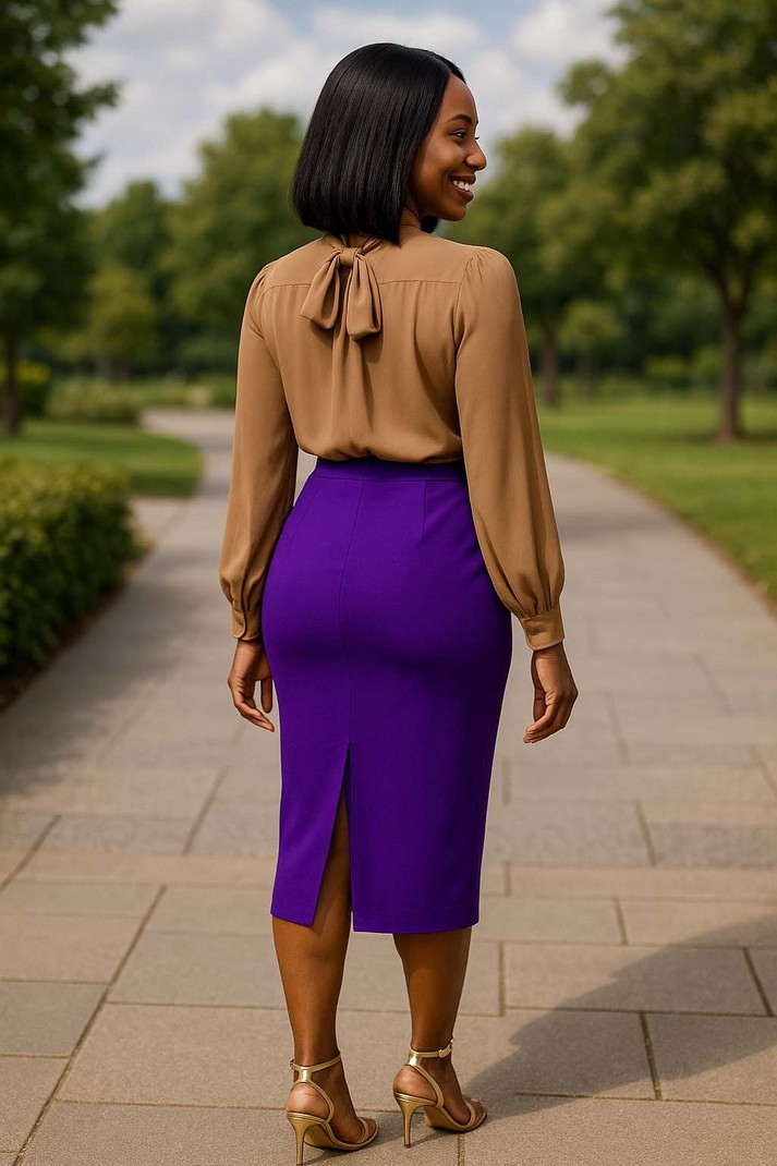 This Purple Cotton Midi Skirt adds a stylish touch to any outfit. Featuring a lightweight cotton fabric for softness and breathability, and an all-over midi-length for an elevated modern look. The perfect addition to your wardrobe.