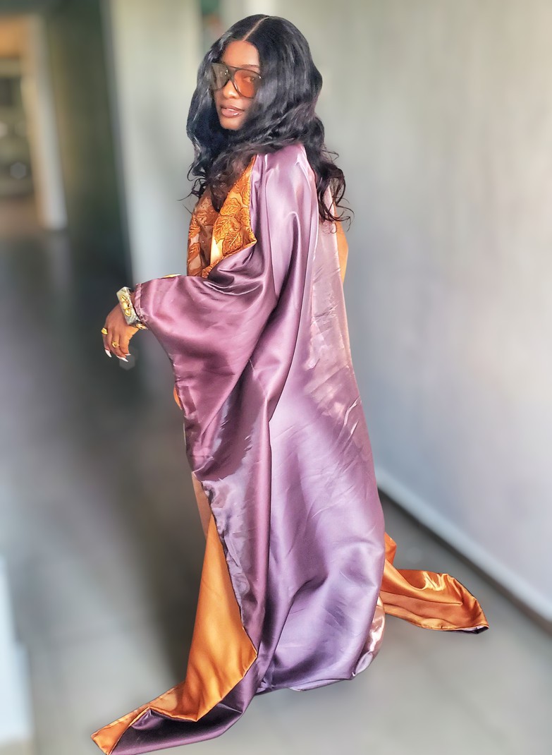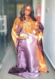 Designed as a boubou, the sequin leaf embellishments on this piece are specially curated and hand sewn on the shimmery fabric to give this piece a very unique and sophisticated look.