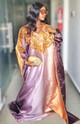 Elegant is the word for this gorgeous piece delicately handmade from a vibrant mikado fabric in three-tone colors.