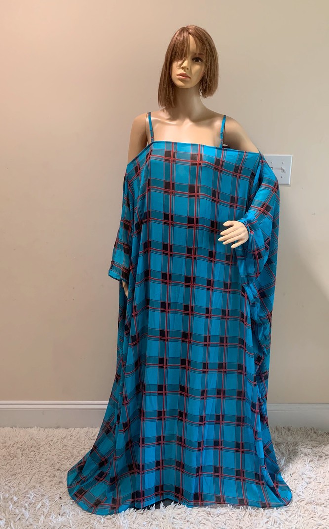 Red and Blue Checkered Print Off Shoulder Maxi Dress