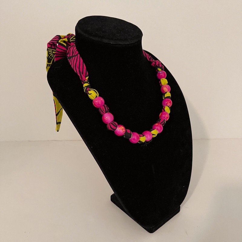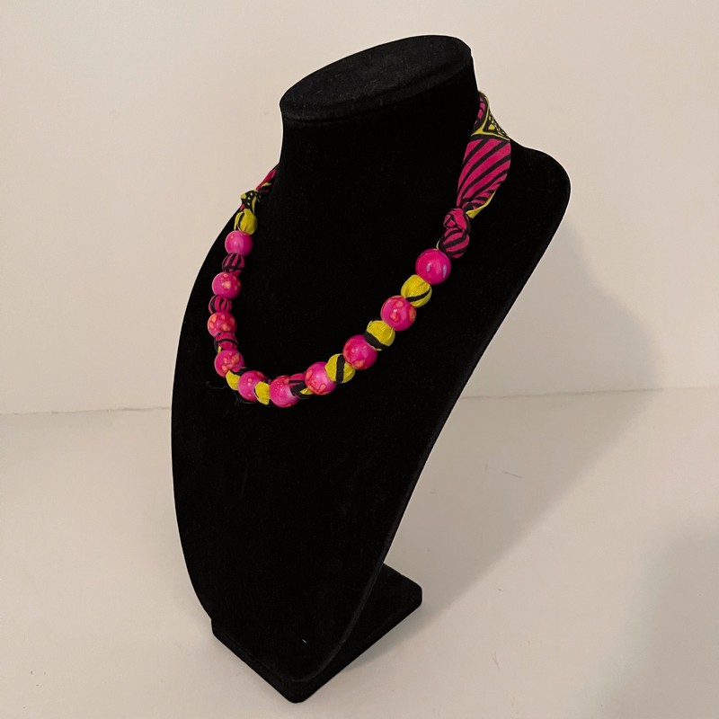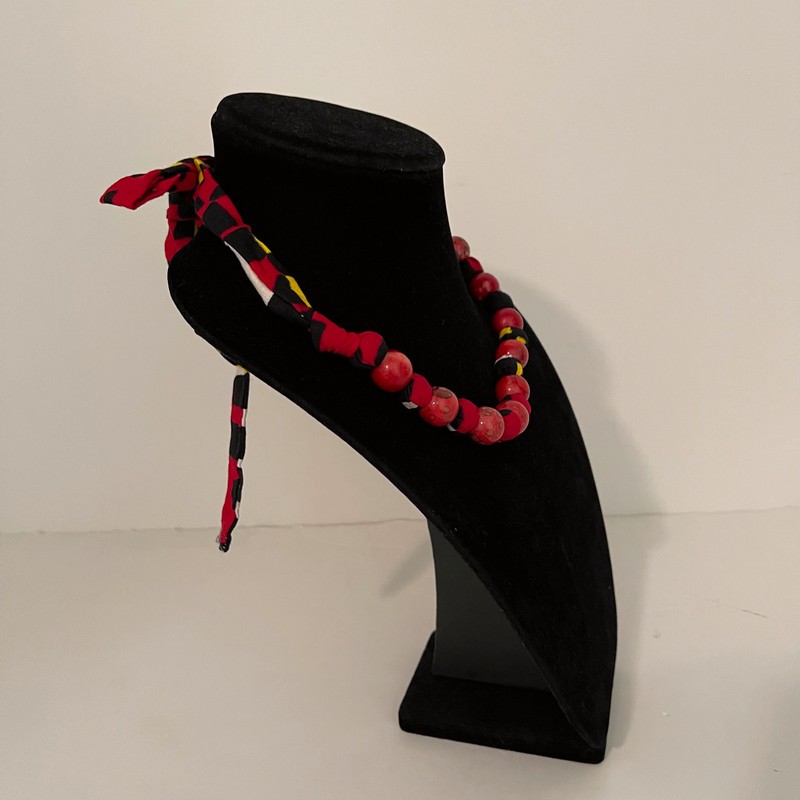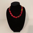 Red multicolor African print Ankara cotton beaded necklace Handmade