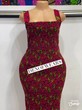 Red sleeveless smocked Ankara dress. Bodycon African print dress. Ankara dress bodycon