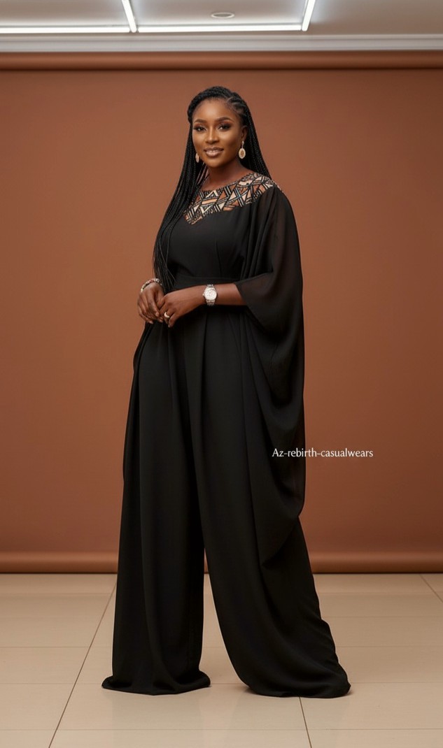 Step out in confidence and elegance with the 'Regal Flow' Boubou Jumpsuit by us. This breathtaking piece redefines comfort and luxury, blending the voluminous grace of a traditional African boubou with the sleek, modern structure of a jumpsuit.