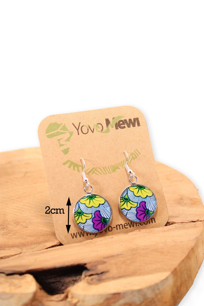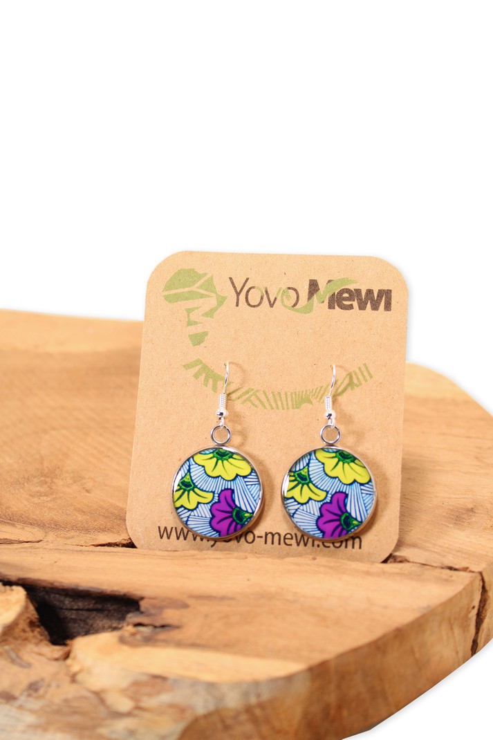 These resin cabochon earrings are covered with wedding flower wax pattern Size: diameter 2 cm -cabochon earrings -Shape: Round *The colors and patterns displayed on your screen may vary slightly from the actual colors. Yovo-mêwi can custom make your earrings according to your fabric and/or shape. So do not hesitate to contact us by message in our shop or on www.yovo-mewi.com 👉 follow us on the Yovo-Mewi Facebook, Instagram, TikTok and Pinterest networks