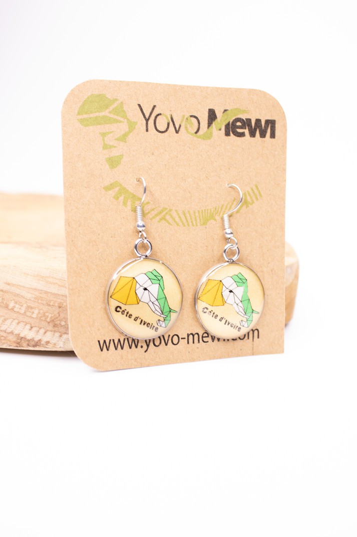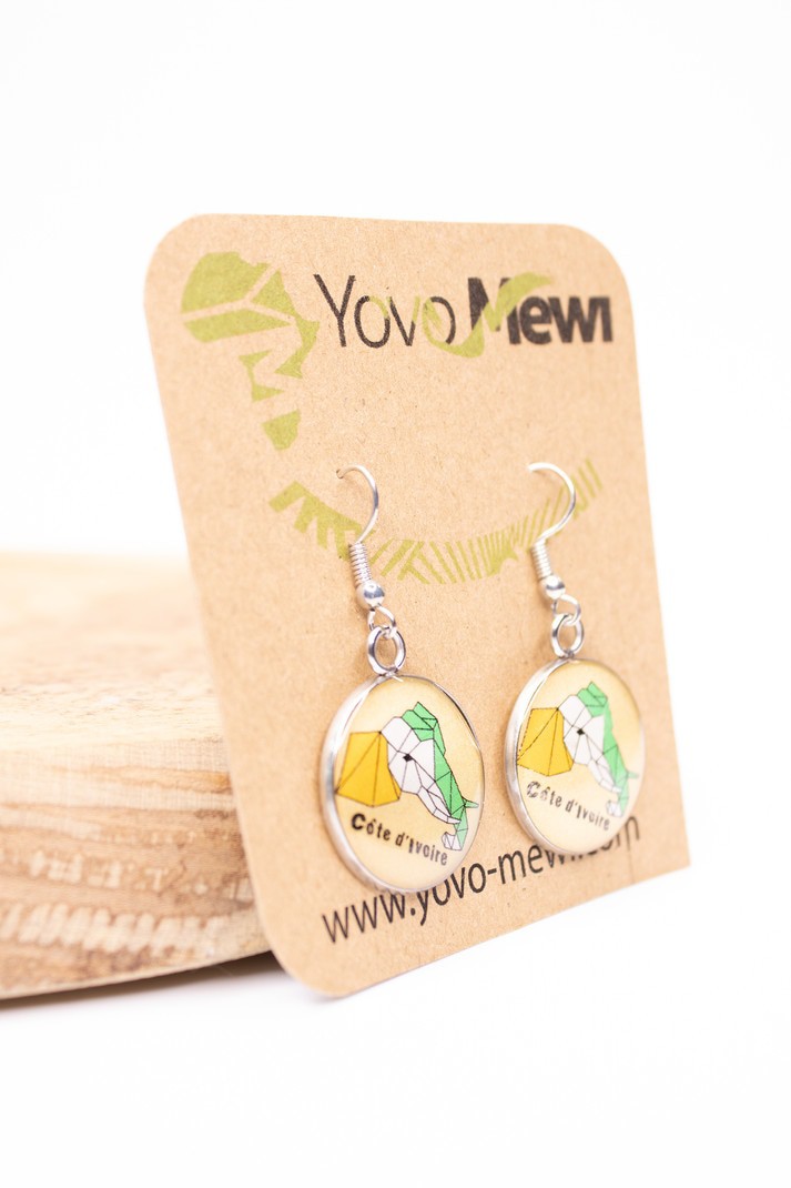 avec ces élégantes boucles d’oreilles aux couleurs de la Côte d’Ivoire.