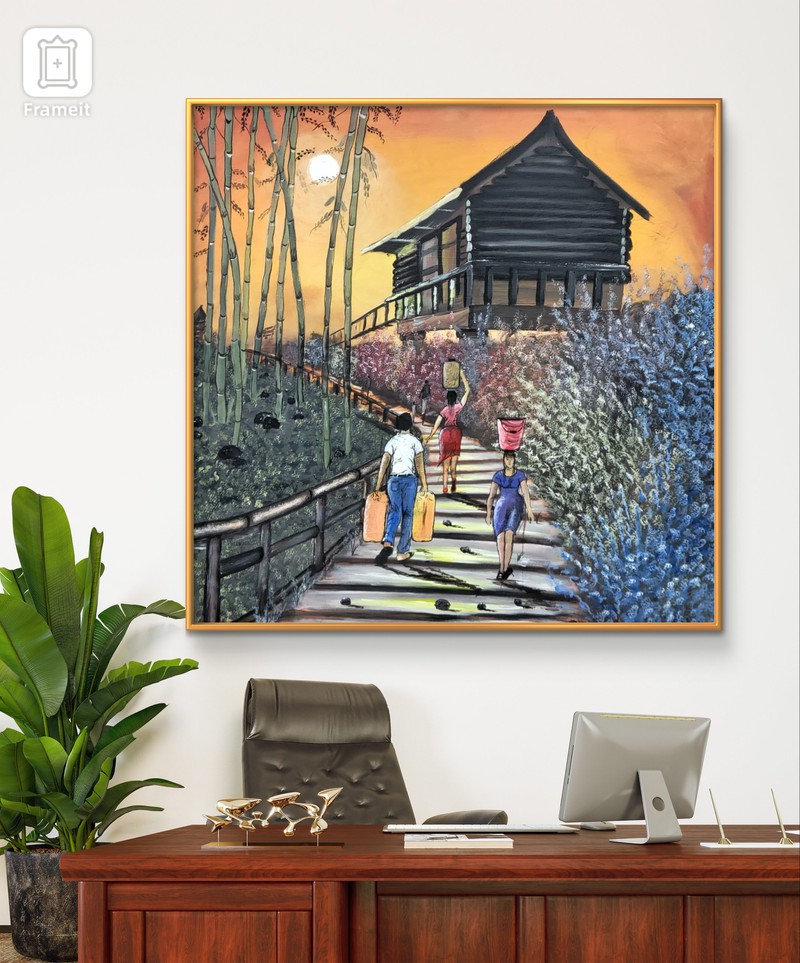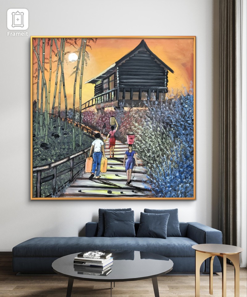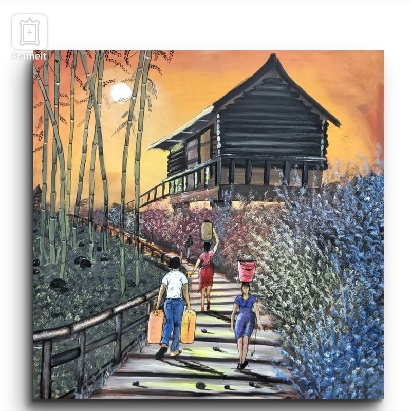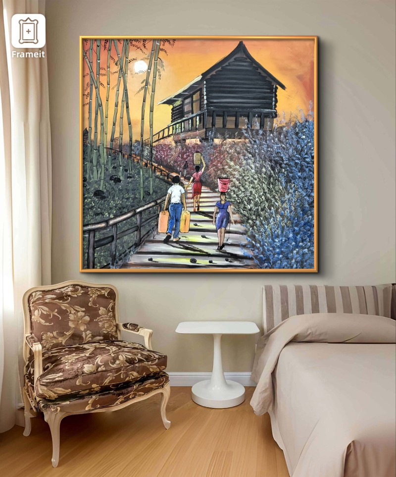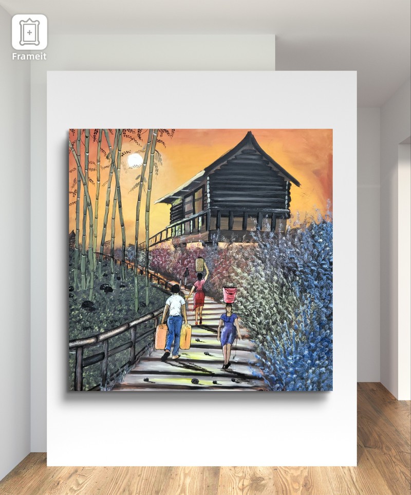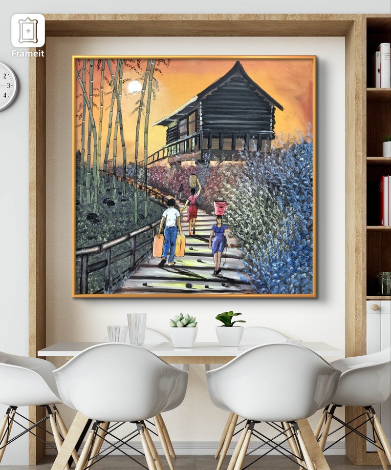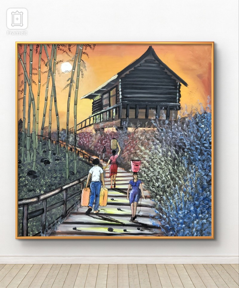 This painting conveys a message about life, highlighting the importance of acknowledging our personal responsibilities. The earlier we understand these responsibilities, the sooner we can initiate a strong work ethic and eschew idle pursuits. The painting depicts individuals carrying gallons and buckets of water, representing their respective responsibilities. It is essential to realize that we cannot rely on others to save us; instead, we must take sole responsibility for creating the life we aspire to have.