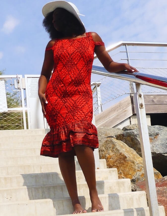 Women Dresses Mid-length Dresses name_en: Flared name_en: Red name_en: For Her name_en: Bazin