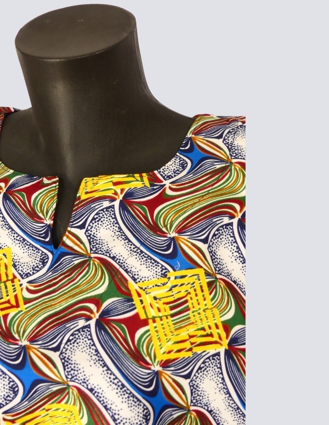 Robe boubou caftan imprimé en coton mi-longue. Manches courtes, évasées, ce qui permet une meilleure aisance et la possibilité d'enfiler la robe quelque soit la taille. Le tissu est épais, 2 grandes poches sur les cotés, boubou mixte homme et femme col tunisien. Taille disponible : du 36 au 42 Matières : coton Couleur : bleu/marron clair/jaune ENTRETIEN : Le tissu WAX se lave à basse température (entre 30 et 40°) . Le nettoyage à la main est à privilégier. Nos tissus sont 100% COTON pour les tissus WAX, KENTE, BOGOLAN. Certains tissus plus communs peuvent être mélangés (polaire, doudou, minky, polyester, lycra ; soie, ect…) ; dans ce cas la composition de l'article entraînera la présence du tissu dans l'annonce.