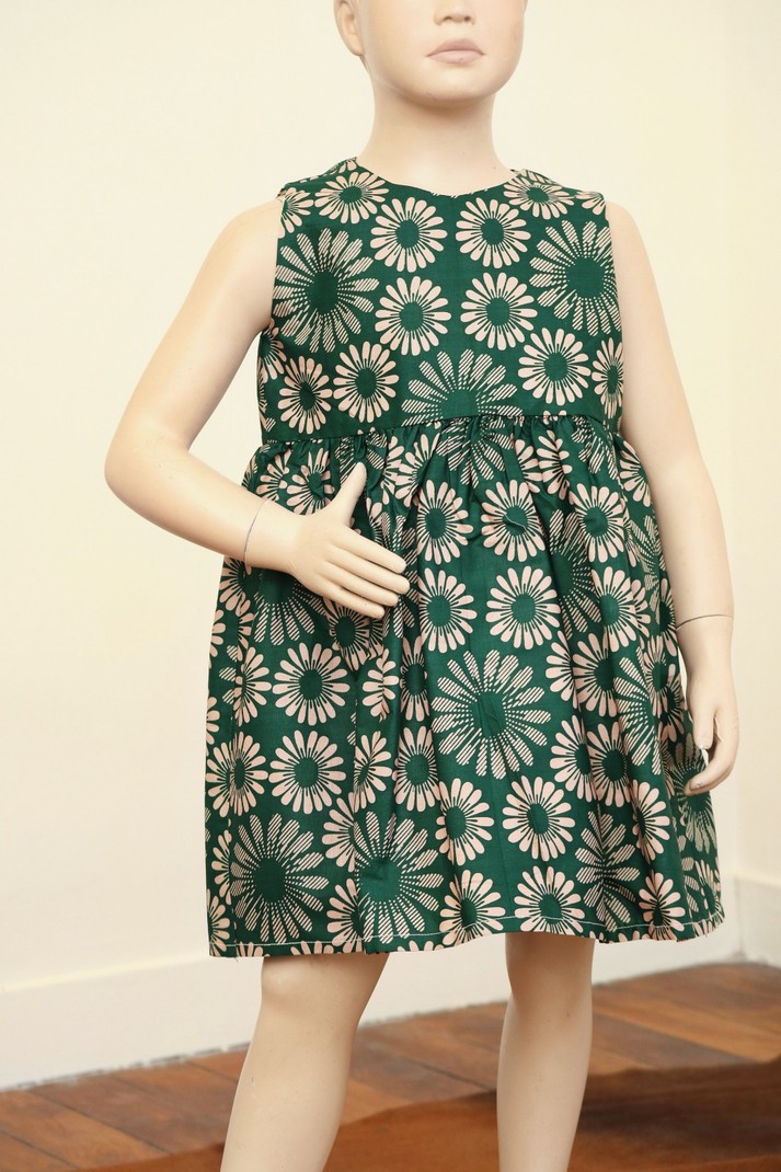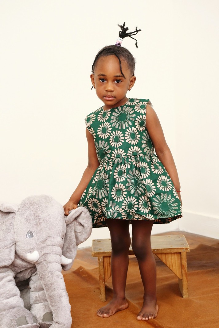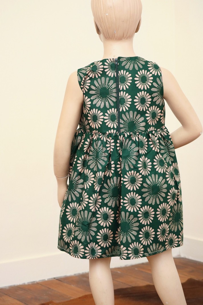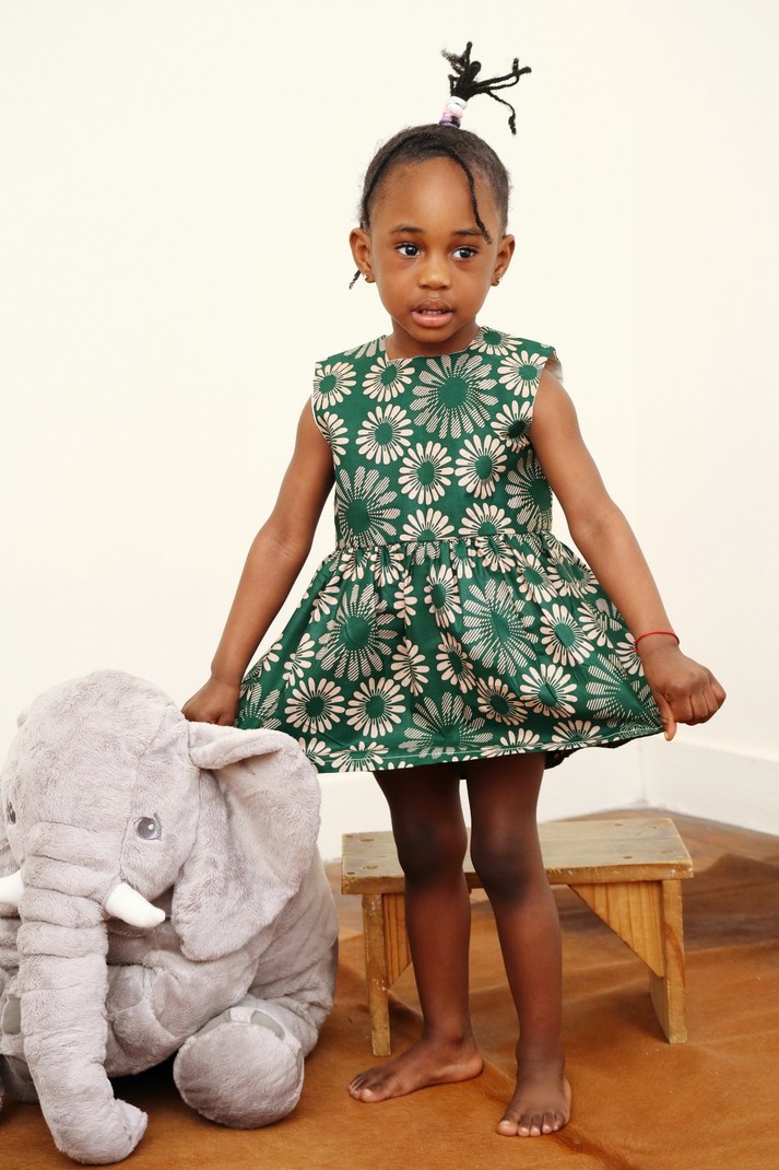 Cette petite robe d'été en coton aux imprimés wax se portera pour toutes les occasions. Dans cette création au tissu classique, votre enfant sera rayonnante. Elle est confortable avec une fermeture éclair au dos. Robe disponible en 9 - 12 mois.