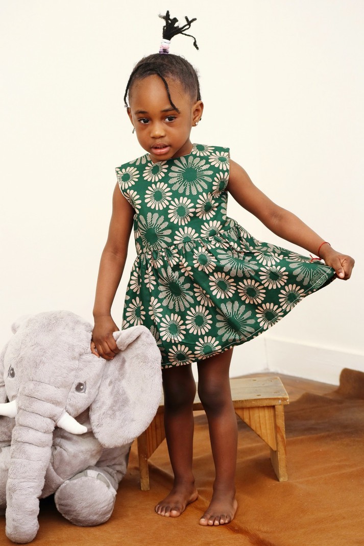 Cette petite robe d'été en coton aux imprimés wax se portera pour toutes les occasions. Dans cette création au tissu classique votre enfant sera rayonnante.