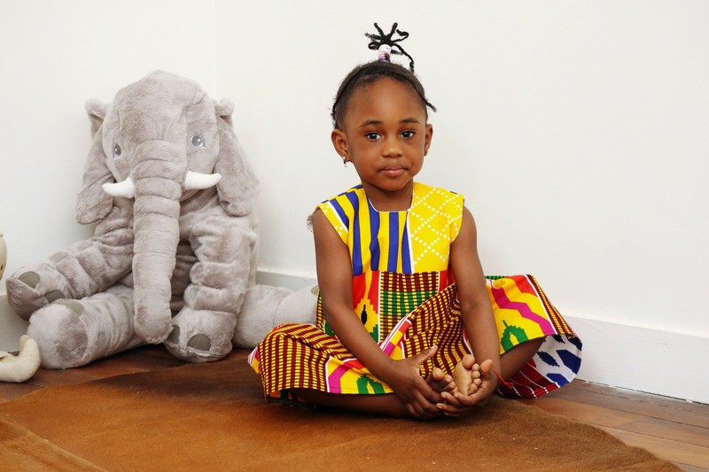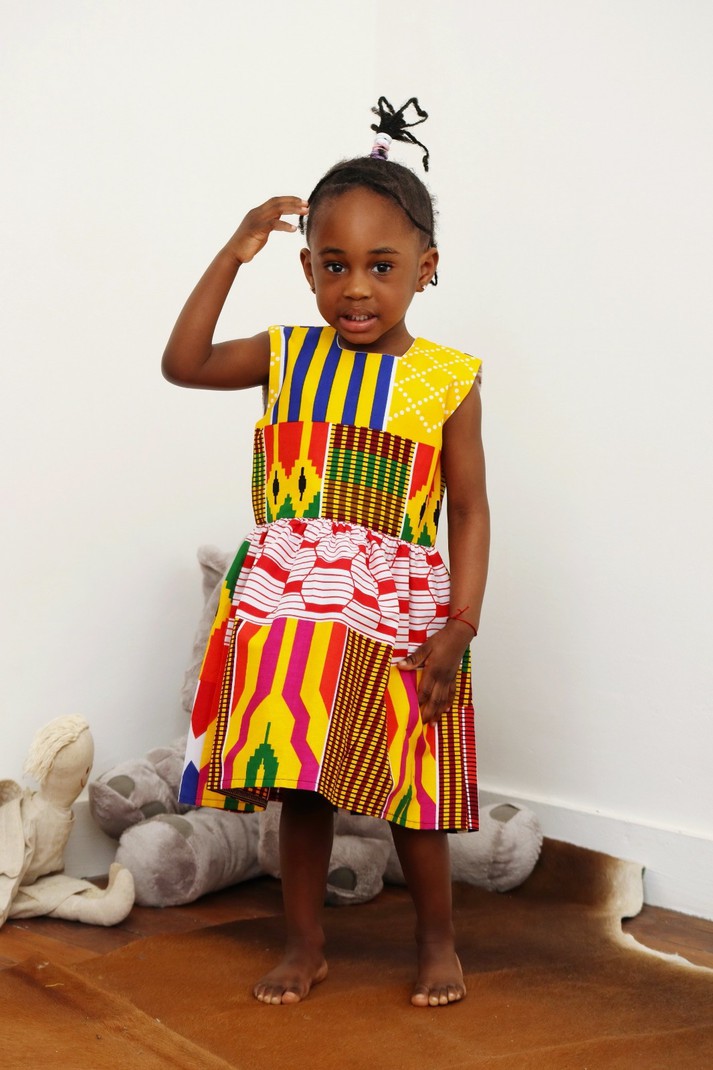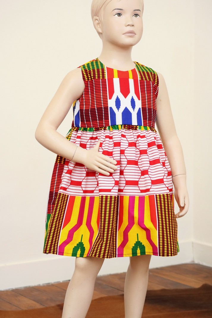 Cette petite robe d'été en coton aux imprimés wax se portera pour toutes les occasions. Dans cette création au tissu classique "Kente" votre enfant sera rayonnante.
