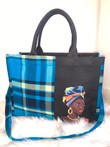 GORGEOUS! Even more beautiful in person! I really fell in love with this fabric! I don't know if he has a specific name. The finishes are nickel. A homemade work but we feel the precision. I feel that I will keep it for a very long time. And customization makes it even more unique. For new models: perhaps consider a removable strap ;-) THANKS III A customer in heaven!