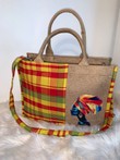 GORGEOUS! Even more beautiful in person! I really fell in love with this fabric! I don't know if he has a specific name. The finishes are nickel. A homemade work but we feel the precision. I feel that I will keep it for a very long time. And customization makes it even more unique. For new models: perhaps consider a removable strap ;-) THANKS III A customer in heaven!