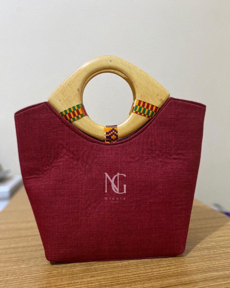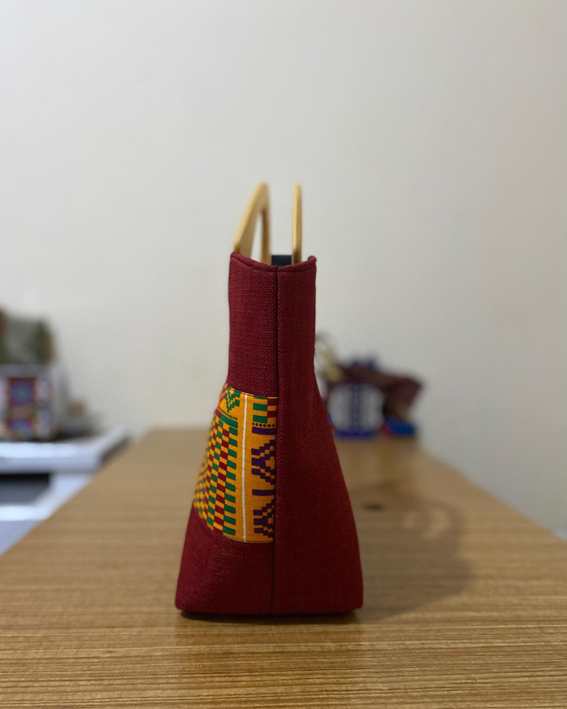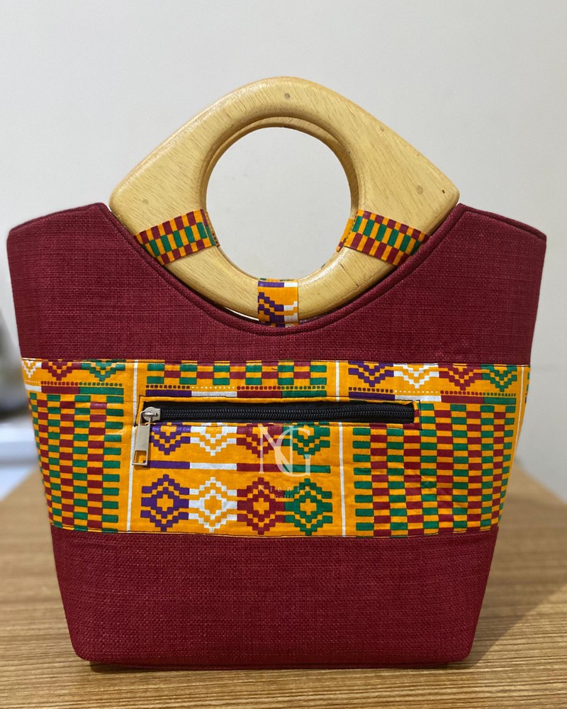 Sac Wax Kente & Raphia Rouge – Poignée Bois