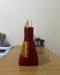Matériaux : Wax motif Kente, raphia rouge, crêpe, carton rigide, doublure textile