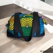 ***NOUVELLE COLLECTION*** Ce sac de voyage a été réalisé en tissu wax et en jean denim. Le sac est entièrement doublé de coton et possède une poche intérieure plaquée pour y ranger votre téléphone ou vos clés… Anses de portage principale ou épaule en sangle de coton. Deux poches extérieures de rangement. La base extérieure du sac est en jean denim. Dimension du sac : *Hauteur : 30 cm *Profondeur : 18 cm *Longueur : 57 cm