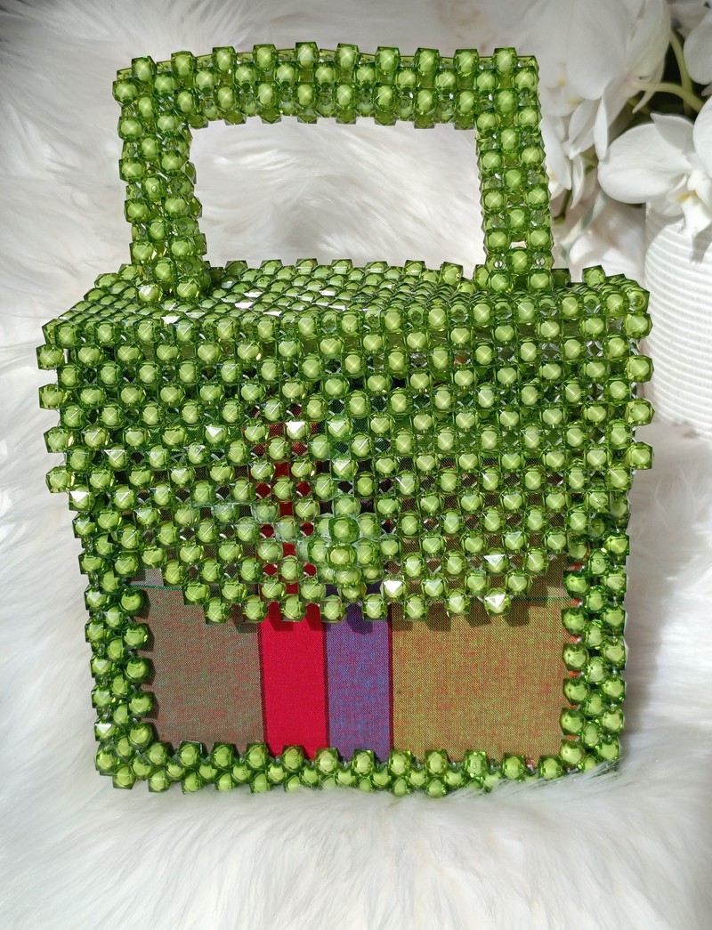 Bags Hand bags name_en: Green name_en: Beads name_en: Madras Fabric