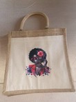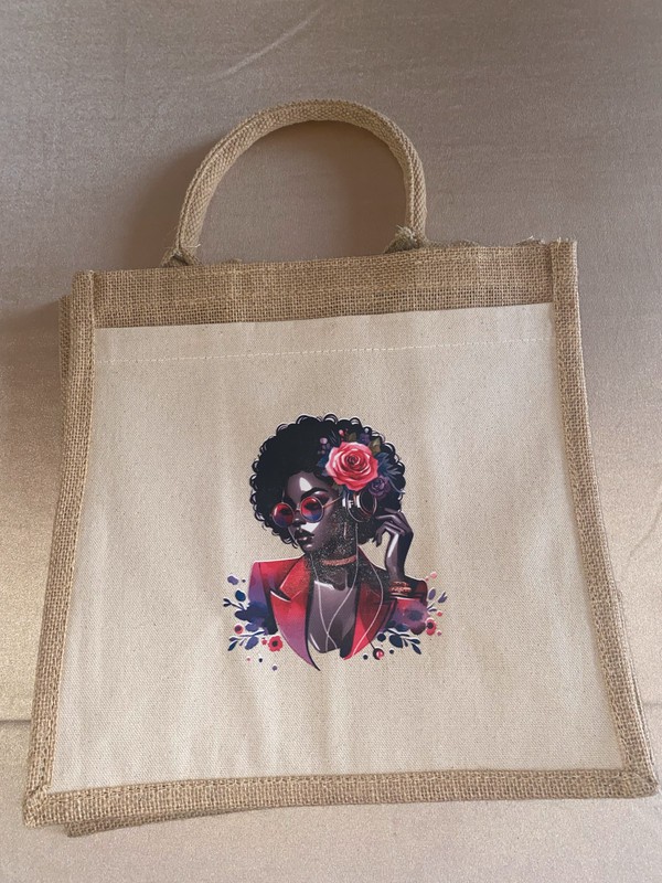 Sac en toile de jute personnalisé avec un motif coloré de femme africaine. Idéal pour le quotidien, le travail, ou encore les balades au parc. Il deviendra votre nouveau compagnon de route ! Dimensions : Longueur 30cm Largueur 30cm Profondeur 19 cm Peut aussi servir de sac de courses ou sac de plage