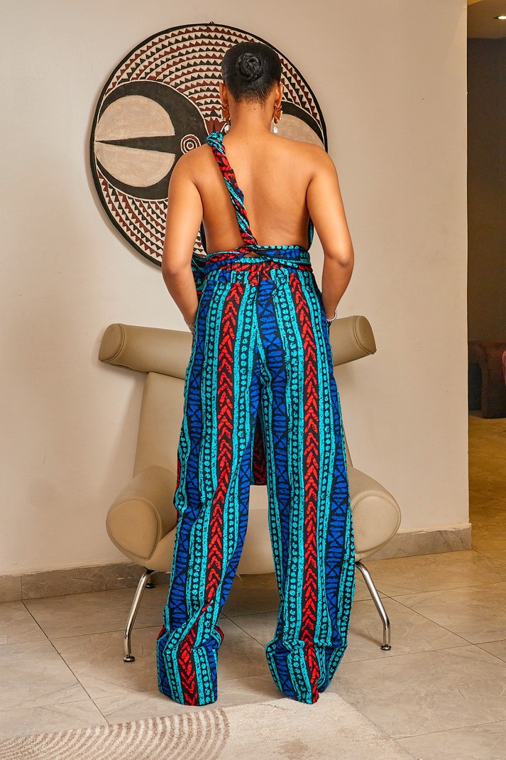 Introducing our Sarah African Print Infinity Jumpsuit, a truly versatile and stylish addition to your wardrobe. This jumpsuit can be worn in over 10 different ways, allowing you to create multiple looks with just one piece. Made from high-quality African print fabric, this jumpsuit is not only fashionable but also comfortable to wear. The infinity design gives you the freedom to experiment with different styles, whether you prefer a strapless look, halter neck, or even a one-shoulder style.
