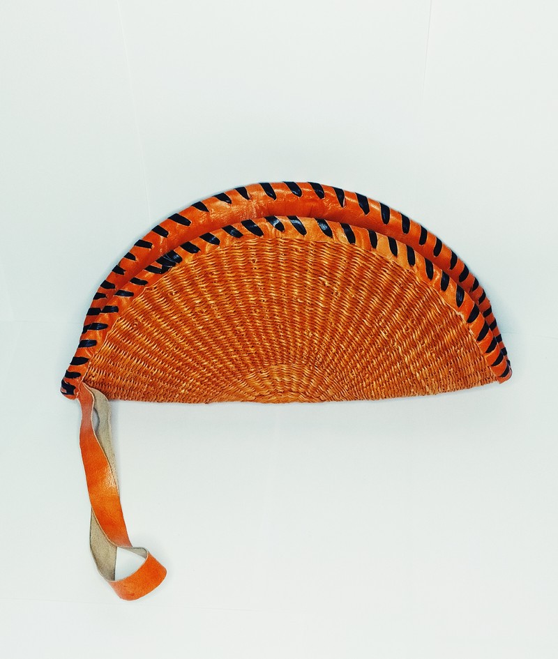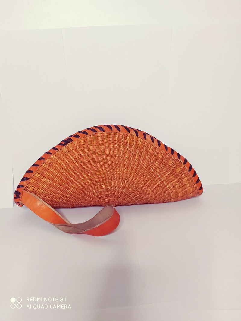 Raffia bag Handmade African crafts Length 33 cm by height 15 cm. Orange colors