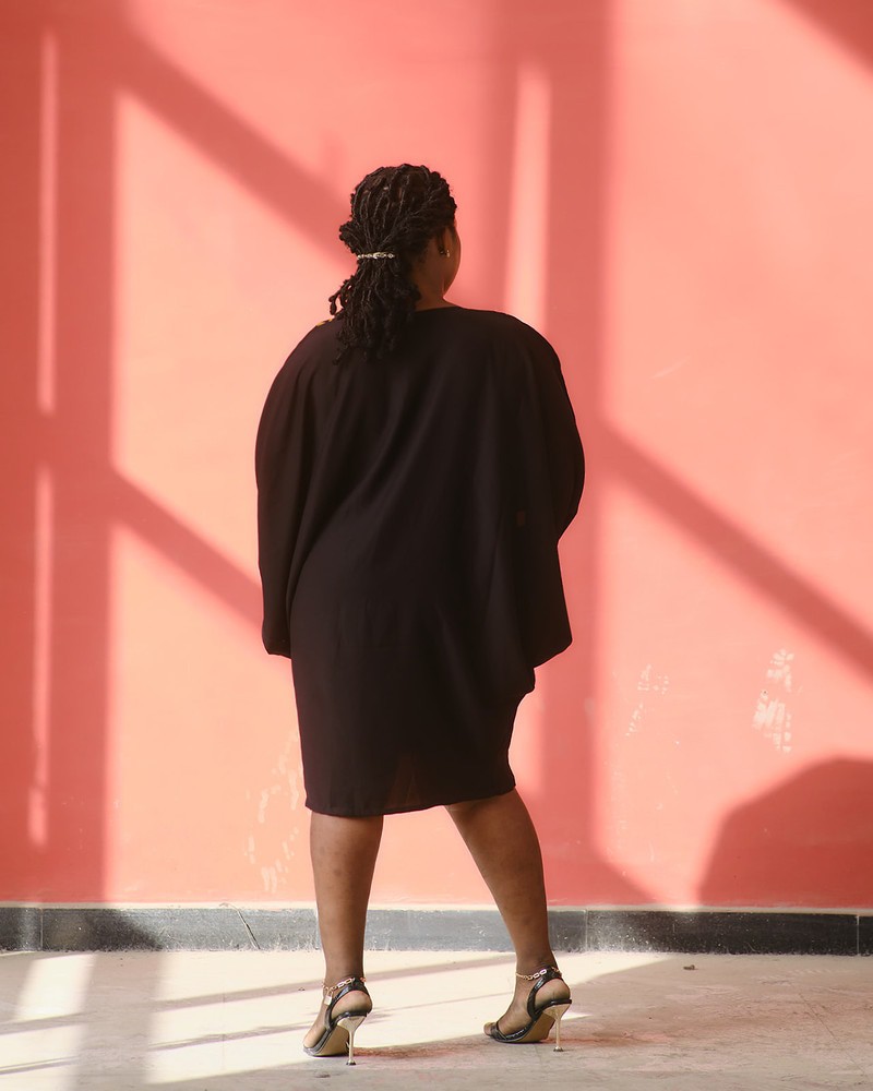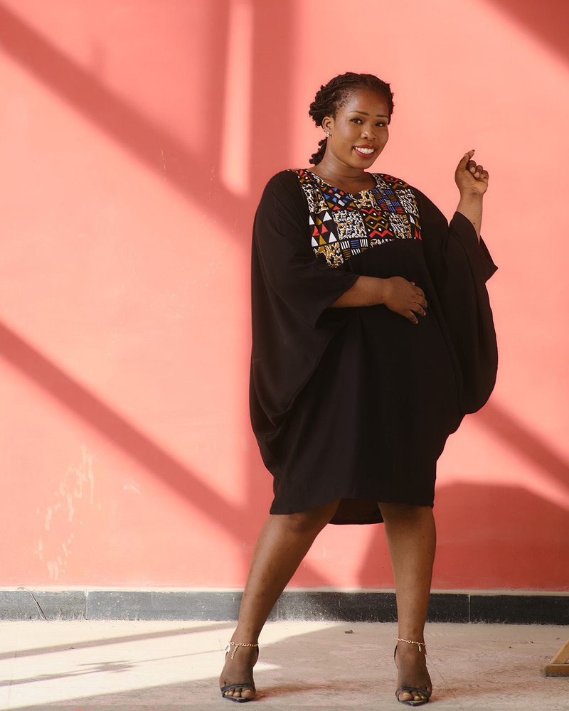 The stylish and comfortable free boubou dress, a perfect addition to your wardrobe. This dress features a classic and timeless design that is both elegant and comfortable. Sibusiso is made from high-quality black crepe fabric that has a soft and flowy texture, providing both comfort and style. The free boubou design of the dress creates a loose and relaxed fit that drapes beautifully over your curves, providing ample coverage while allowing for ease of movement. Sibusiso also features Kente print neckline design as an extra detail. We are an all inclusive brand and WE DO ALL SIZES AT NO EXTRA CHARGE.