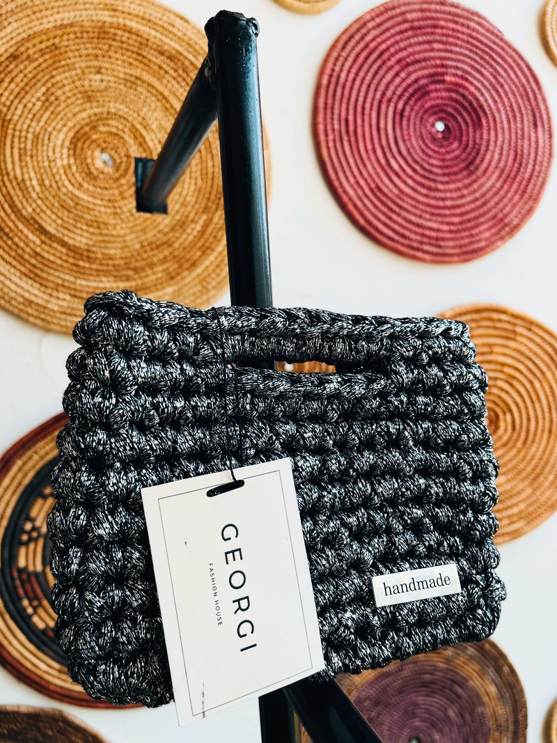 A refined mini purse handcrafted with premium shirt yarn for a structured, glossy finish. The Silver Dream Mini fits a smartphone and a car key, perfect for elegant evenings or minimalist daywear.