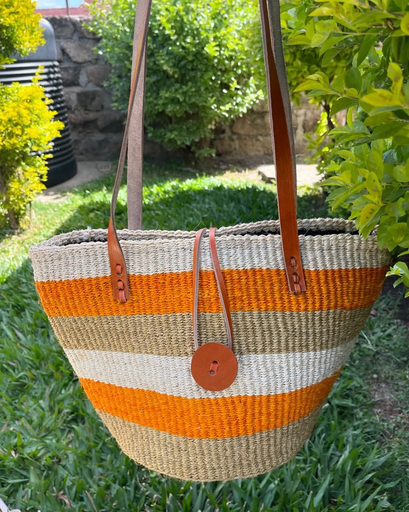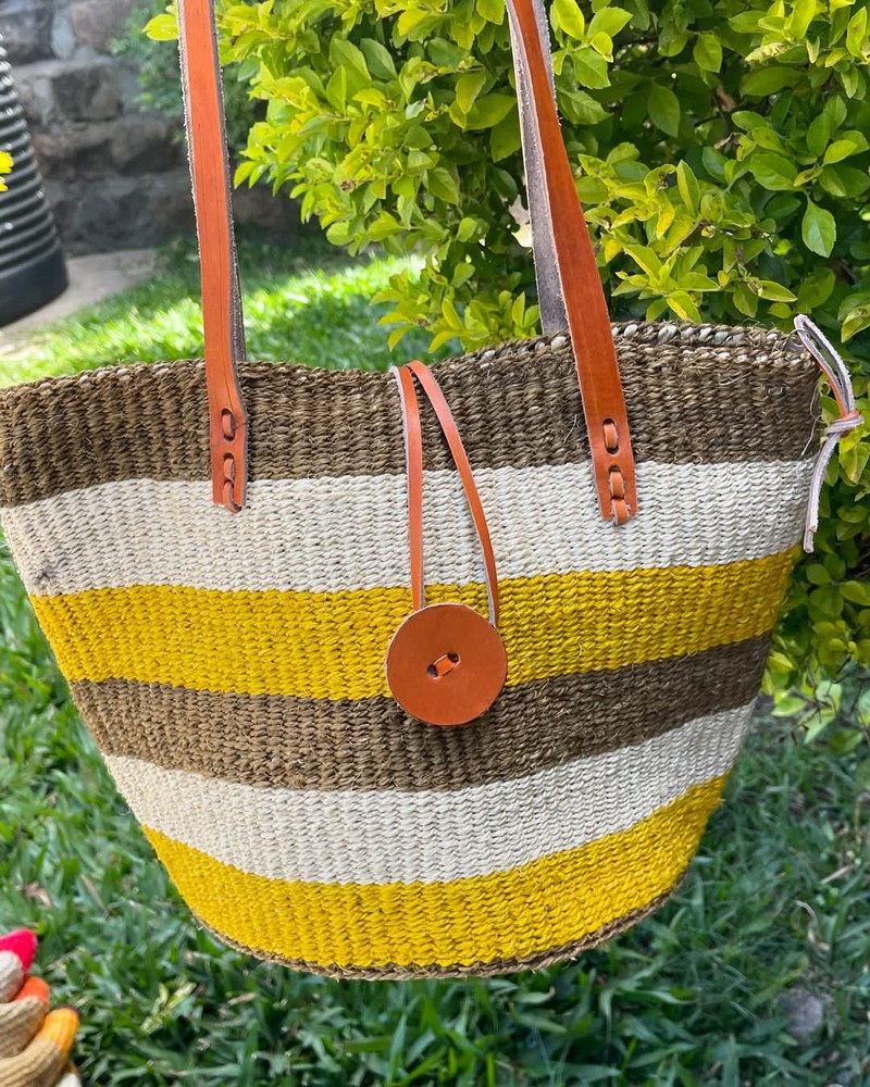 These beautiful handmade Tote bag originated from craftsmen living in Eastern Community in Kenya, the Akamba. Our Tote bags are woven using colored sisal and leather.The woven bag is made from products which are entirely eco-friendly and sustainable, leather to provide comfort and padding. Leathers are naturally tanned from cows. It has a zipper and an inner lining. This Tote bag is really stylish, functional and eco-friendly for everyday use, summer travels and beyond. From travel to work or a night out, makes it easier to fill your closet with ethical, high quality staples for every occasion. Size:12" Width x 12" Height (excluding the handle). They are also available into sizes 8", 10" As African I stores, we are very pleased and proud of the fact that each bag we bring in to your life provides support for Kenyan craftsmen and their families and contributes to the continuation of this unique works of art. Bags are shipped through DHL Express Kenya A tracking number will be provided. Please do not be surprised when you receive your bag. Bags are flattened and wrapped in sacks/flyers when shipping by courier. This does not damage the bas they are resilient and durable. WHOLESALE: Do you own a physical store/shop and would wish to sell these kind of bags for this colour and or other colours and design or you have an online store and would wish to add our bags to your stock?? We supply these bags in wholesale to hundreds of store owners world wide at a wholesale price. Kindly send us a message. CLEANING Kindly do not sock the bag in water Because they are made from natural sisal, to clean it, kindly wipe it with a dry piece of cloth or moist piece of cloth. THANK YOU FOR SHOPPING WITH US.