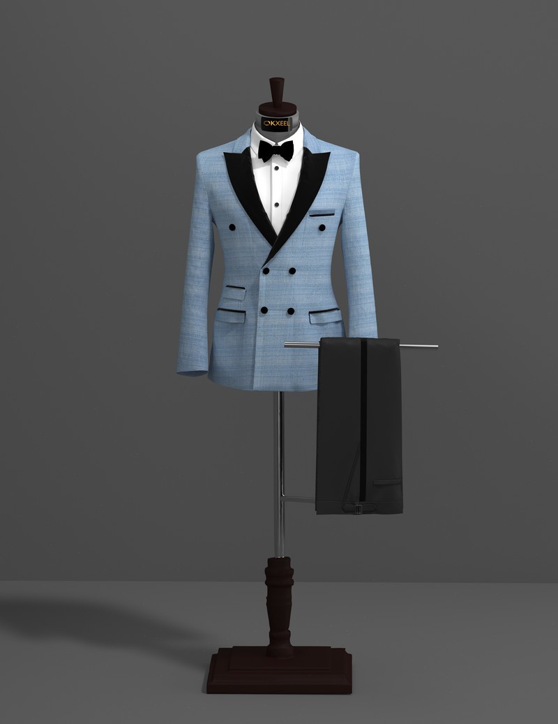 skyblue-offwhite double breasted tweed suit..........................best seller