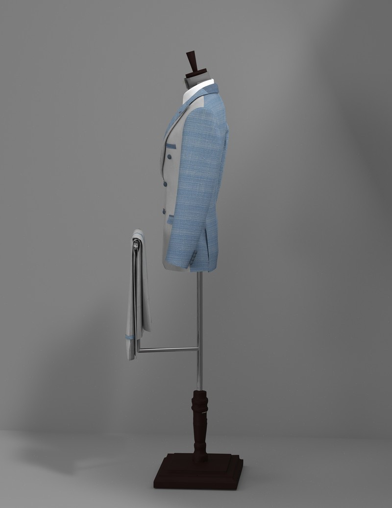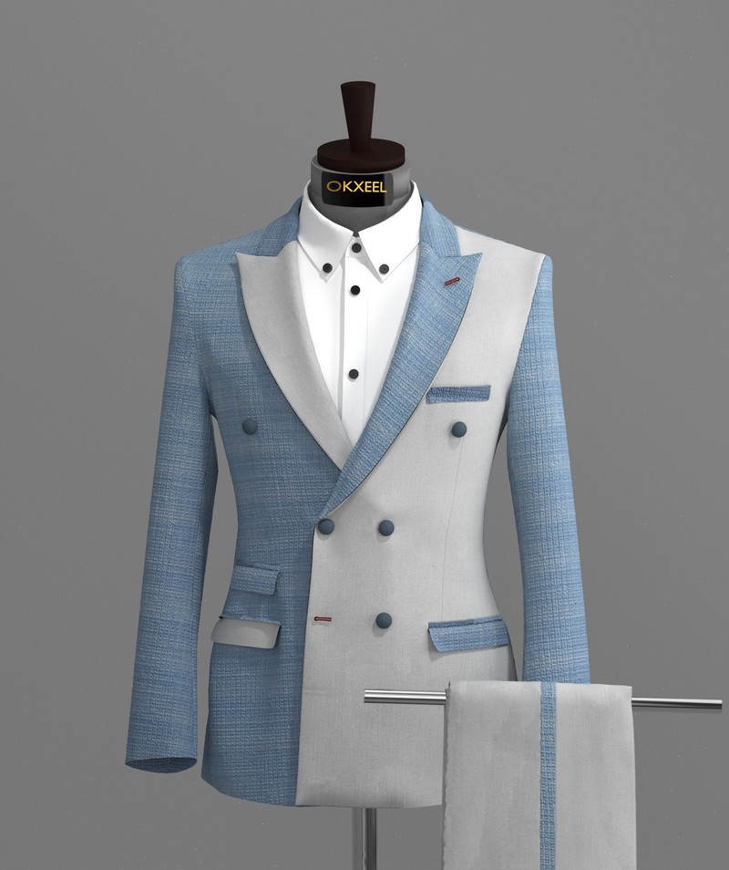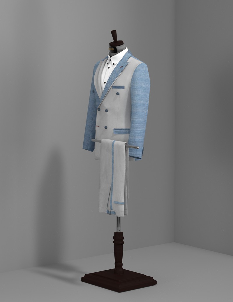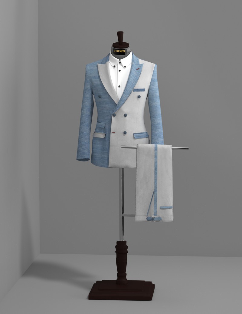 skyblue-offwhite double breasted tweed suit