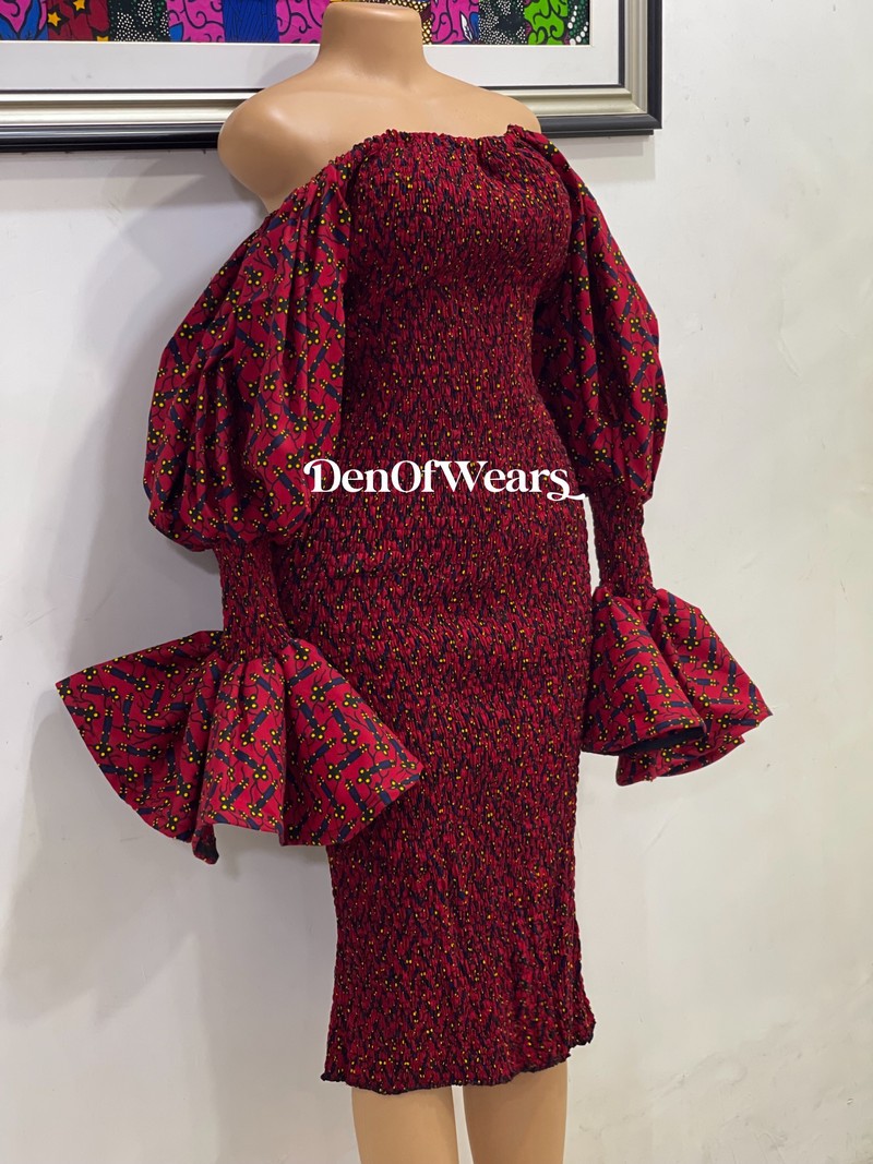 smocked mid length Ankara fabric dress. Flare African print dress. Stylish smocked Ankara dress