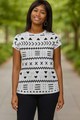 This Tribal Women T-shirt features an authentic African black and white print, perfect for adding a unique touch to any outfit. Made with high-quality material, it offers comfortable wear and stylish design for the modern woman. Celebrate cultural diversity with this one-of-a-kind T-shirt.