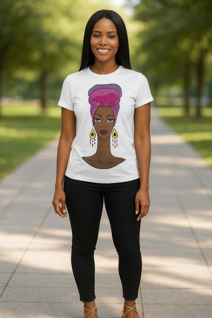 This African print women's t-shirt features a stylish and versatile turban scarf, adding a unique touch to any outfit. Made with high-quality fabric, it offers both comfort and style, perfect for any occasion. Elevate your wardrobe with this eye-catching and cultural piece. Product Features Please Compare your Measurements To our Size Chart This T-shirt is Designed for fashionable women. Made from 5.47 Oz. 100% polyester. Double-needle hemmed sleeves and bottom. Vivid print that will never fade after washing Soft, lightweight and quick drying. Delivery Time This item will be processed within 3-7 business days (Excluding Weekends and Holidays). Once products ships it can take up to 15 Business days depending on your location. Out of Stock items can be requested by emailing us at [email protected] Care Instructions Machine wash cold inside out. Gentle cycle with mild detergent and like colors. Do not use bleach or fabric softener. Do not tumble dry. Hang to dry to ensure maximum shelf life. Iron inside out if necessary. Do not iron the print. Do not dry clean.