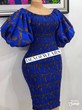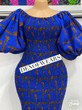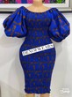 Stylish blue mid length Ankara dress. Bodycon African print dress.Ankara dress. stylish puff sleeves