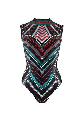 SURMA – MURSI “I am the guardian of the valleys of Abyssinia” Bodysuits or Leotards iMmOrteL Paris BODY, Elastane jersey fabric Long sleeves, high round neck, invisible zip fastening on the back. Printed fabric with geometric patterns symbolizing body ornaments. Fabric designed by Lassana Samassa MADE in FRANCE Article designed by Lassana Samassa for the iMmOrteL collection, Manufacture in limited series, synonymous with quality and creativity. Composition: 92% Recycled PET 8% EA – JERSEY VANISE Texture: Gentle Wash at 30°