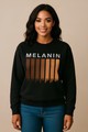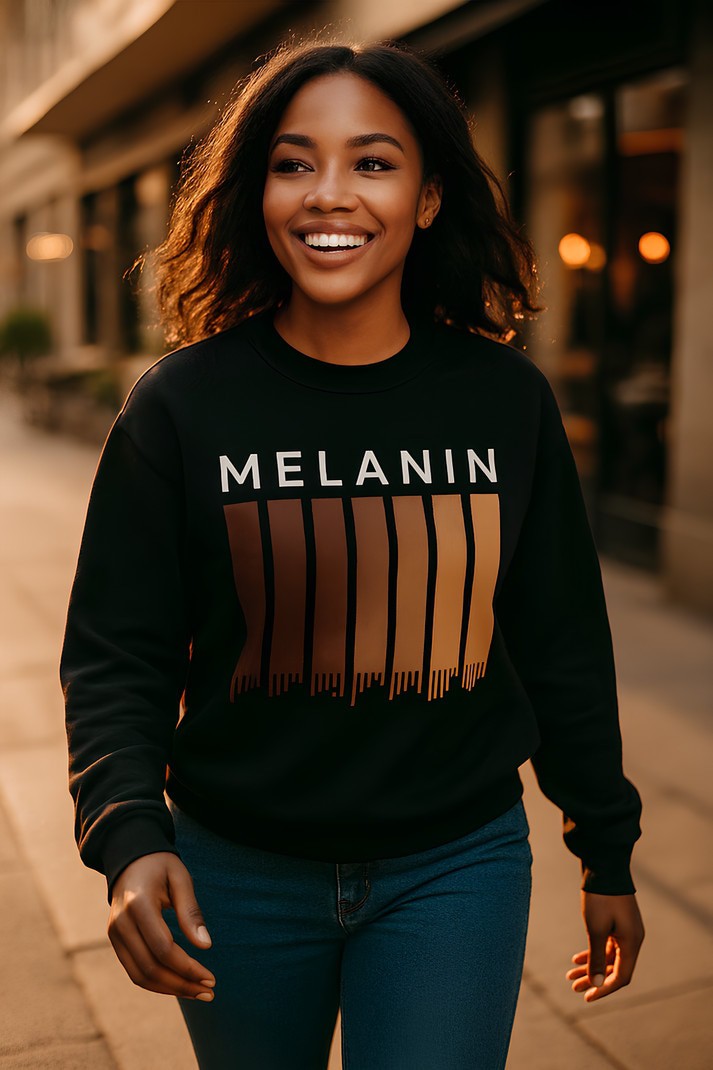 The black Melanin sweatshirt is a stylish and comfortable clothing item that showcases pride in one's skin color.