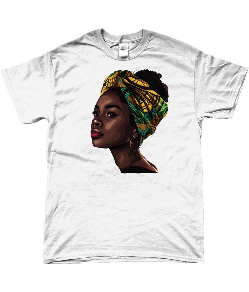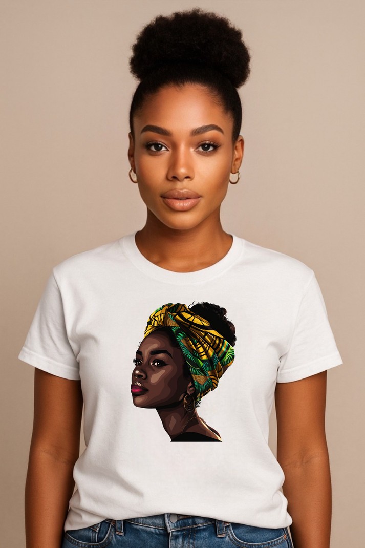 Bold. Beautiful. Unapologetically You. This premium tee blends comfort and culture with style that speaks volumes. Featuring a powerful portrait of a woman in a classic turban, it honors beauty, strength, and heritage. Made from soft, breathable cotton, it’s perfect for everyday wear; whether you’re dressing it up with a blazer or keeping it casual with jeans. This isn’t just a t-shirt, it’s a statement of pride and individuality. - Premium cotton fabric, soft and durable - Unique Afro woman design for cultural expression - Unisex fit, sizes S–5XL - Easy to style with jeans, skirts, or layered looks Celebrate who you are and let your style speak for itself. Material: 100% ring-spun cotton Weight: 4.5 oz / y² (153 g / m²) Made to order in one of our production centers (UK, EU or Canada).
