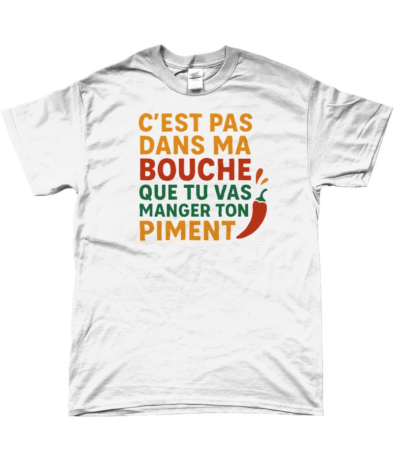 Show your love for effortless style with the "C'est pas dans ma bouche T-shirt. Made from soft, breathable cotton, it’s designed to keep you comfortable while turning heads. The minimalist graphic adds just the right amount of edge, making this tee perfect for everyday wear, coffee dates, or laid-back weekends. Pair it with jeans, skirts, or layered under a blazer; this versatile piece adapts to your vibe with ease. A simple yet striking design that celebrates a true taste for life. Material: 100% ring-spun cotton Weight: 4.5 oz / y² (153 g / m²) Pre-shrunk for added durability Round collar Unisex or woman cut (your choice) Care Instructions: Machine wash cold inside out. Gentle cycle with mild detergent and like colors. Do not use bleach or fabric softener. Do not tumble dry. Hang to dry to ensure maximum shelf life. Iron inside out if necessary. Do not iron the print. Do not dry clean. Production: This product is made to order. The design is printed in one of our production centers (UK, EU, USA or Canada - depending on your delivery address).