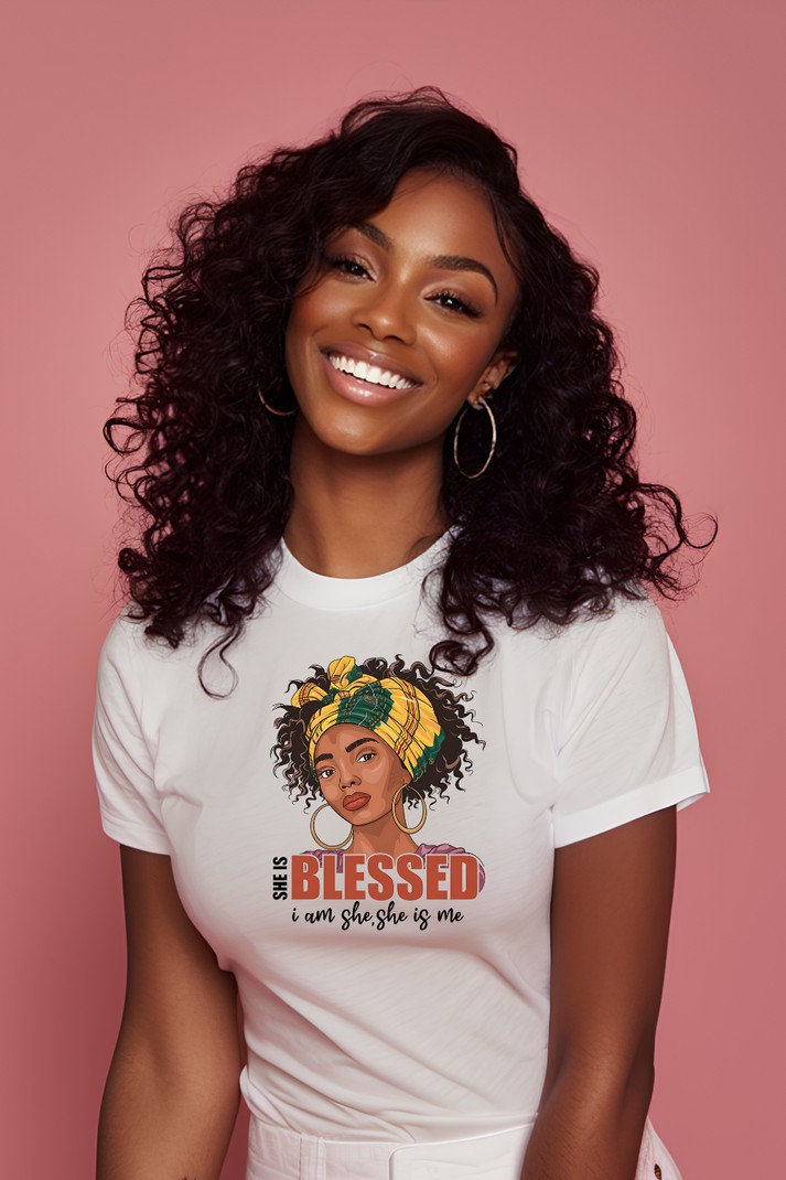 Step up your style game with our "She is Blessed" T-shirt, designed to inspire and uplift.