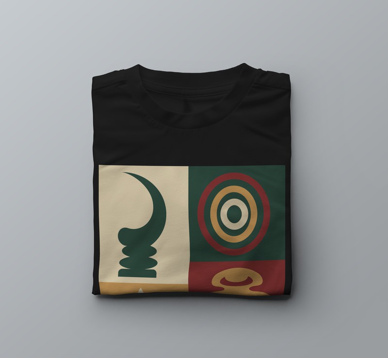 Affirmez votre style avec le t-shirt “Adinkra 02”, une pièce expressive de la collection Adingra x Bauhaus, qui fusionne les symboles visuels d’Afrique de l’Ouest et l’esthétique géométrique du design Bauhaus.
