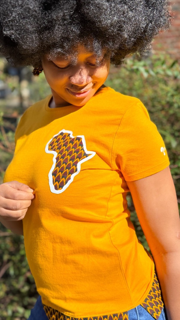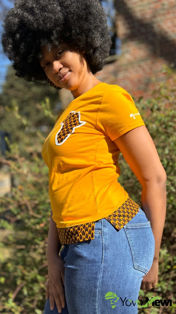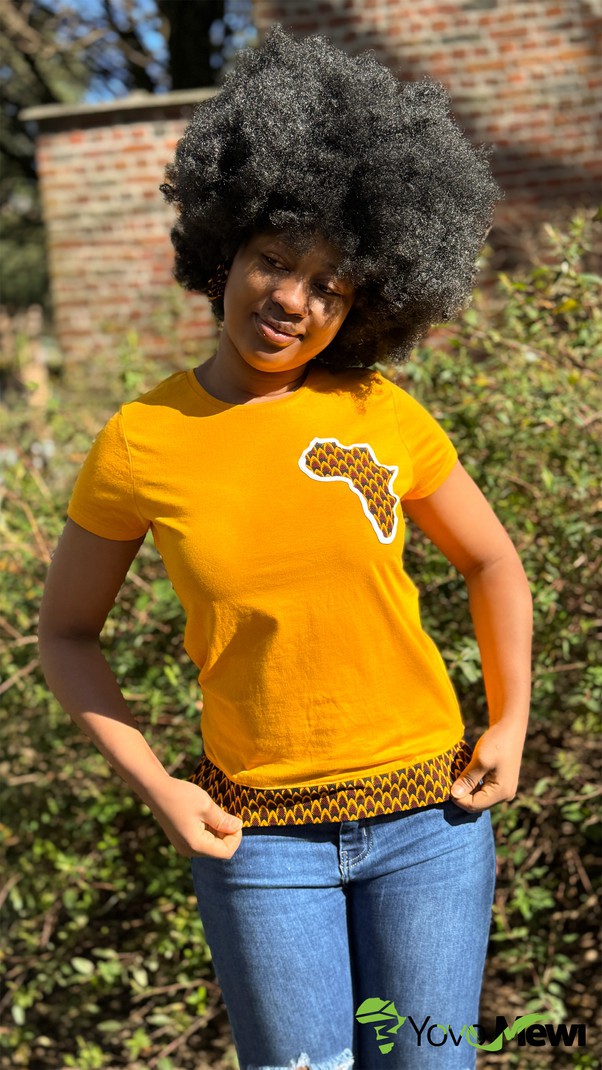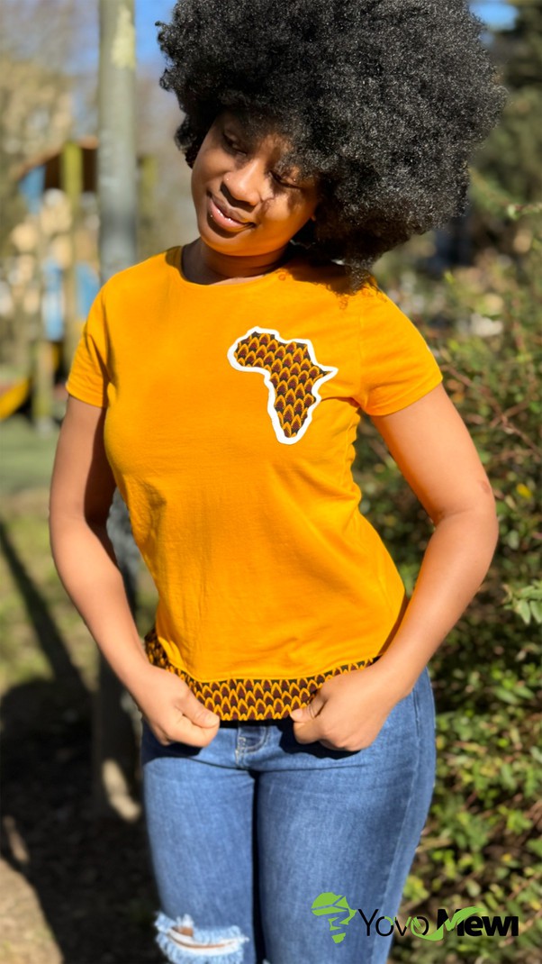 Ce t-shirt jaune vif célèbre l'héritage africain avec un design authentique et inspirant. Il est orné d'un logo représentant la carte de l'Afrique, confectionné en tissu wax bogolan, apportant une touche ethnique et artisanale unique. La base du t-shirt est également agrémentée d'un assemblage en wax assorti, créant un bel équilibre entre modernité et tradition. Confortable et stylé, ce vêtement est idéal pour affirmer une identité culturelle forte tout en restant tendance. -100% Coton prérétréci à fil de chaîne continue. 160g/m2 Pour une meilleure durabilité du tee-shirt il est préférable de le laver retourné Attention : Les couleurs et motifs affichés sur votre écran peuvent légèrement varier des couleurs réelles. Pour une meilleure durabilité du tee-shirt il est préférable de le laver retourné *Les couleurs et motifs affichés sur votre écran peuvent légèrement varier des couleurs réelles. 👉suivez nous sur les réseaux Yovo-Mewi Facebook, Instagram, TikTok et Pinterest