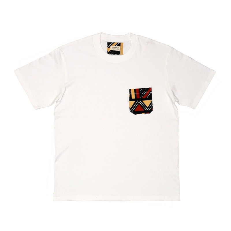 Tee-shirt blanc pur, orné d'une poche en Bogolan, technique traditionnelle malienne aux motifs géométriques. Fabriqué à la main, ce modèle en coton doux offre une coupe intemporelle et une finition soignée. La poche, riche en détails, en fait une pièce unique à porter avec élégance.