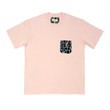 Tee-shirt rose doux et féminin, agrémenté d'une poche en Ndop Rosé aux motifs délicats. Fait main en coton de qualité, il allie couleur tendance et savoir-faire artisanal, pour une pièce unique.