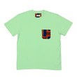 Tee-shirt vert fluo avec poche en Kenté 2, une variation ashanti (Ghana) aux couleurs rebelles. Fait main, pour oser la différence.