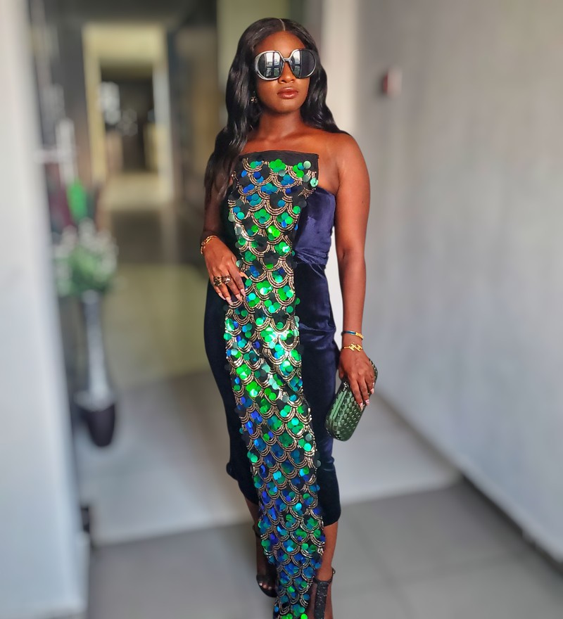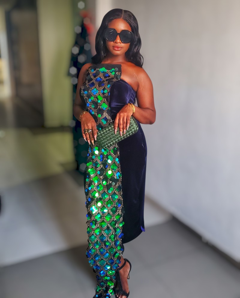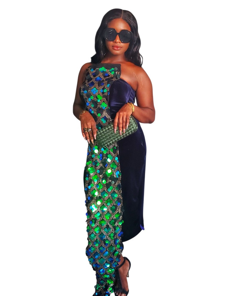 Embellished with large sequins at the back of the dress, this piece can be worn on all special occasions and by all body types.